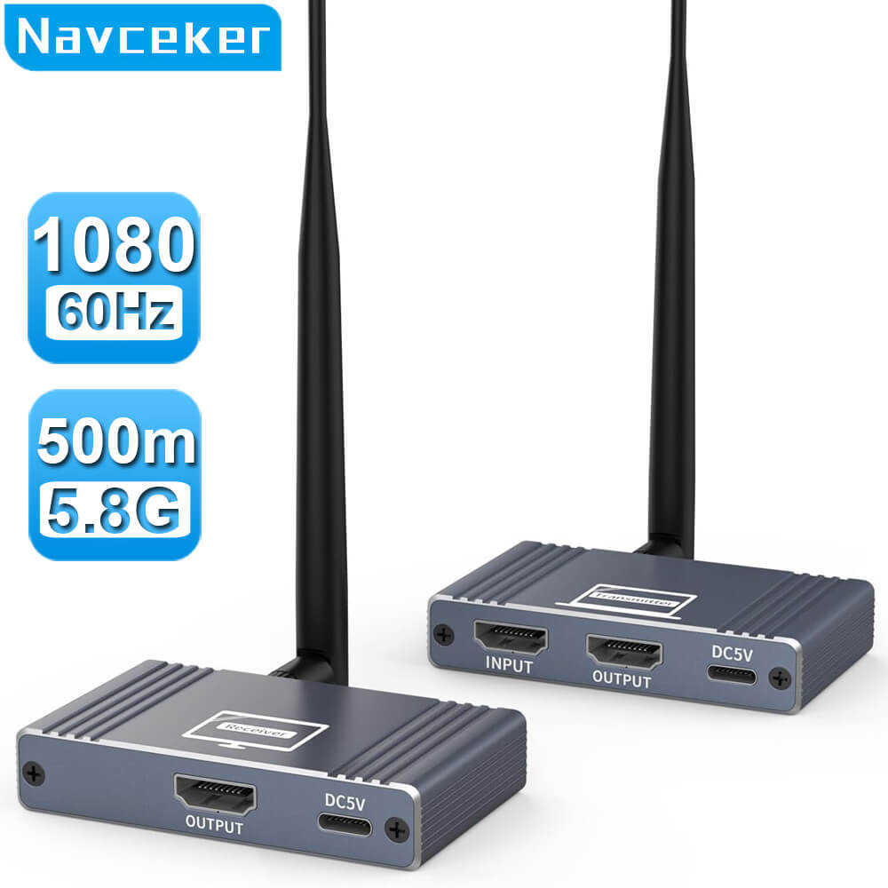 Navceker 500m Wireless HDMI Transmitter is design by High-performance AM8360D + AM8268D Chipset,6-Layer PCB,Aluminum Shell and 24K Gold Plated Corrosion-resistant Connectors to ensure superior signal transfer.